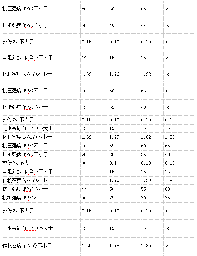 半導體石墨模具、燃料電池導流板、石墨基體、切硅棒用石墨板、電子束蒸發用石墨內襯、玻璃金屬封裝用石墨舟、電子燒結模用石墨、離子注入用石墨部件、 單晶爐用石墨熱場等。